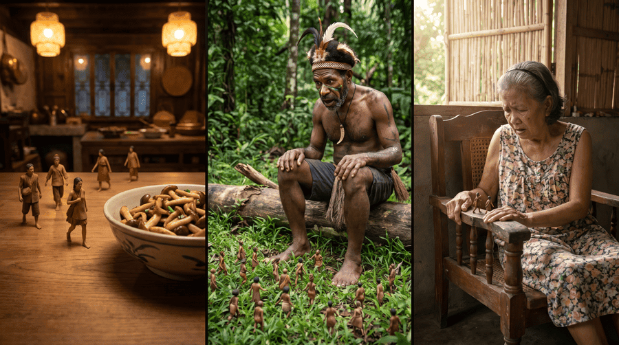 One tribesman in Papua New Guinea described seeing “tiny people with mushrooms around their faces, teasing him and chasing him.” In another account, a man watched the figures enter through a gap under his door, parade across the room, and exit through a window. What is most striking to researchers, however, is the consistency: across unrelated individuals and cultures, the visions are nearly identical — so much so that scientists treat them as a reliable pharmacological signature of the mushroom.